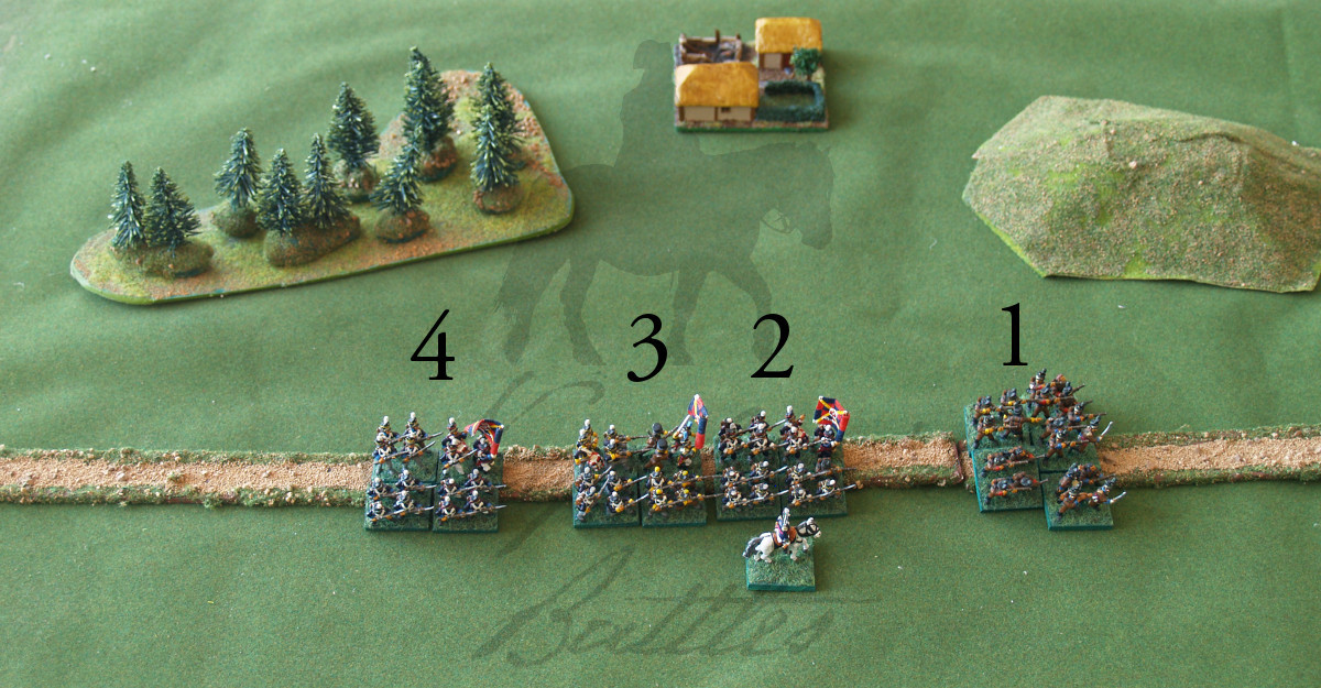 In our first example, we have a continuous column of four units following the track of a road. As long as they remain in march column and follow the track, they don’t need a commanding officer, but if the players intends to deploy in column formation, they will need a commanding general.